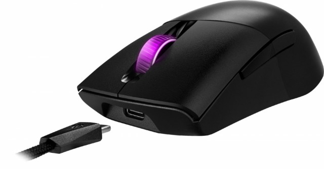 Lightweight FPS wireless gaming mouse with tri-mode connectivity (wired / 2.4 GHz / Bluetooth), specially tuned ROG 16,000 dpi sensor, exclusive push-fit switch sockets, PBT polymer L/R keys, swappable side buttons, ROG Omni Mouse Feet, ROG Paracord and Aura Sync RGB lighting