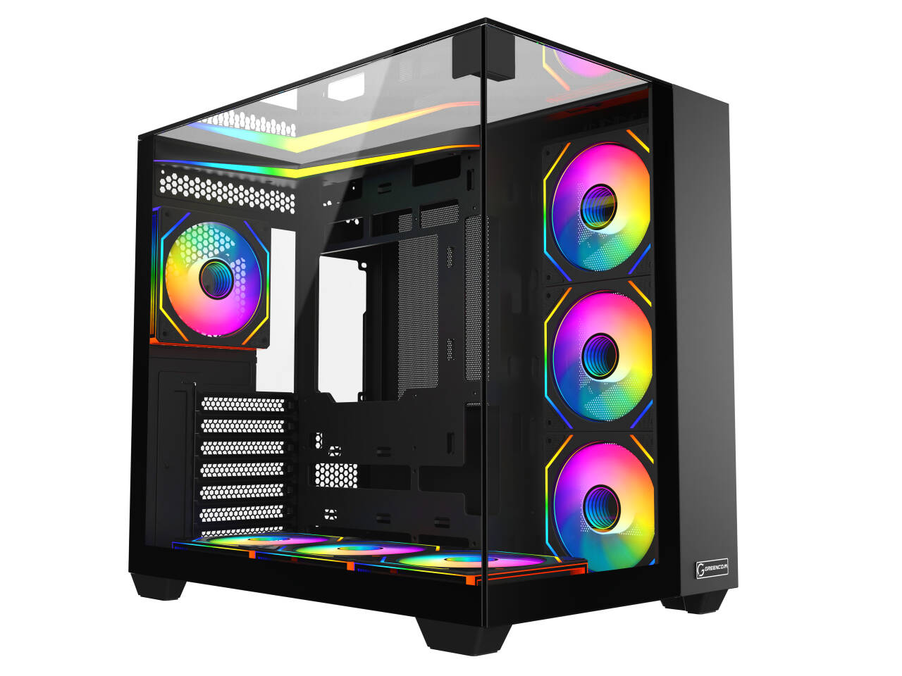 • Greencom Cosmic 590X RGB Midi-Tower – GAME IN STYLE med helglasfront och livfull belysning.