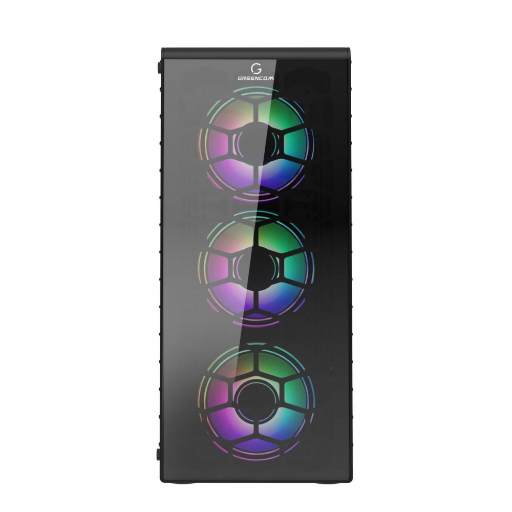• Greencom Cosmic 590X RGB Midi-Tower – GAME IN STYLE med helglasfront och livfull belysning.