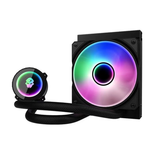 RGB panorama-lyseffekter: Både vifter og vannkjølerpumpe er utstyrt med en unik RGB-belysning og visuelle RGB-effekter. Lysfargen og effektene kan tilpasses for å matche resten av PCen din.